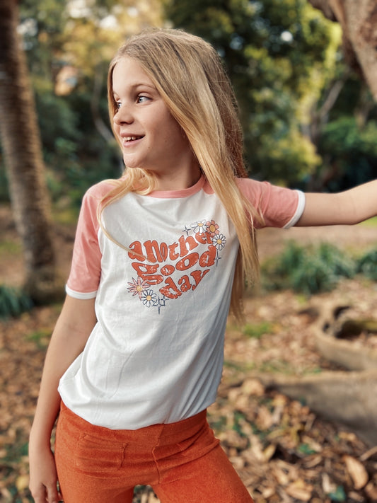 Good Day Ringer Tee - Cream/Pink