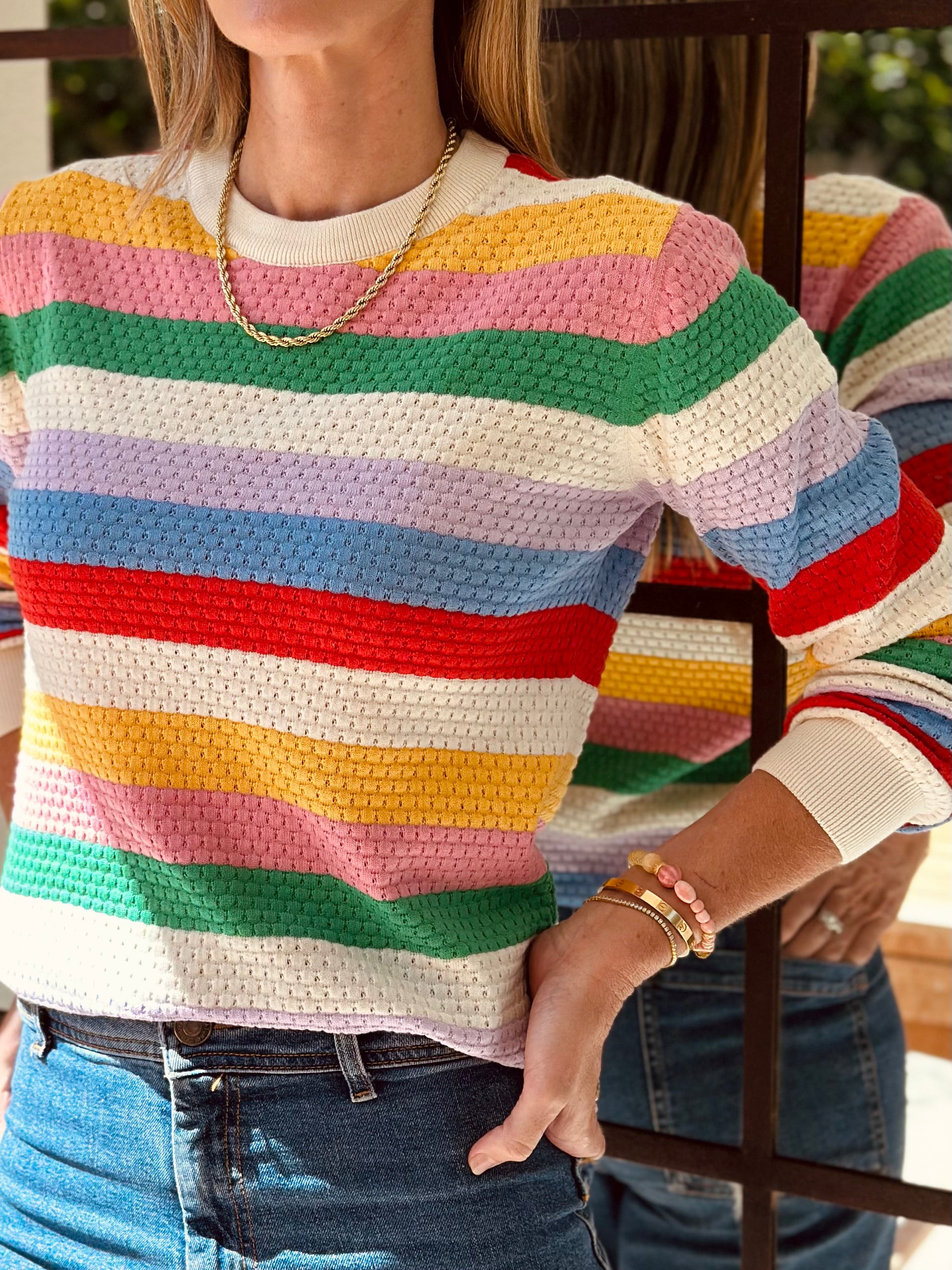 Bringing nothing but happiness to your wardrobe, our Beyond the Rainbow knit is fun and cosy and the instant antidote to blah days. Just add jeans and coffee and your weekend is made.