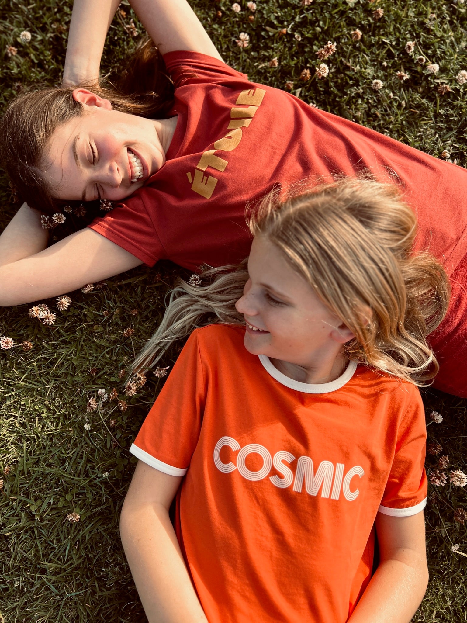 Take a cosmic trip in this retro ringer tee. Made from soft, light cotton with contrasting rib detail. We love this style worn with flares.