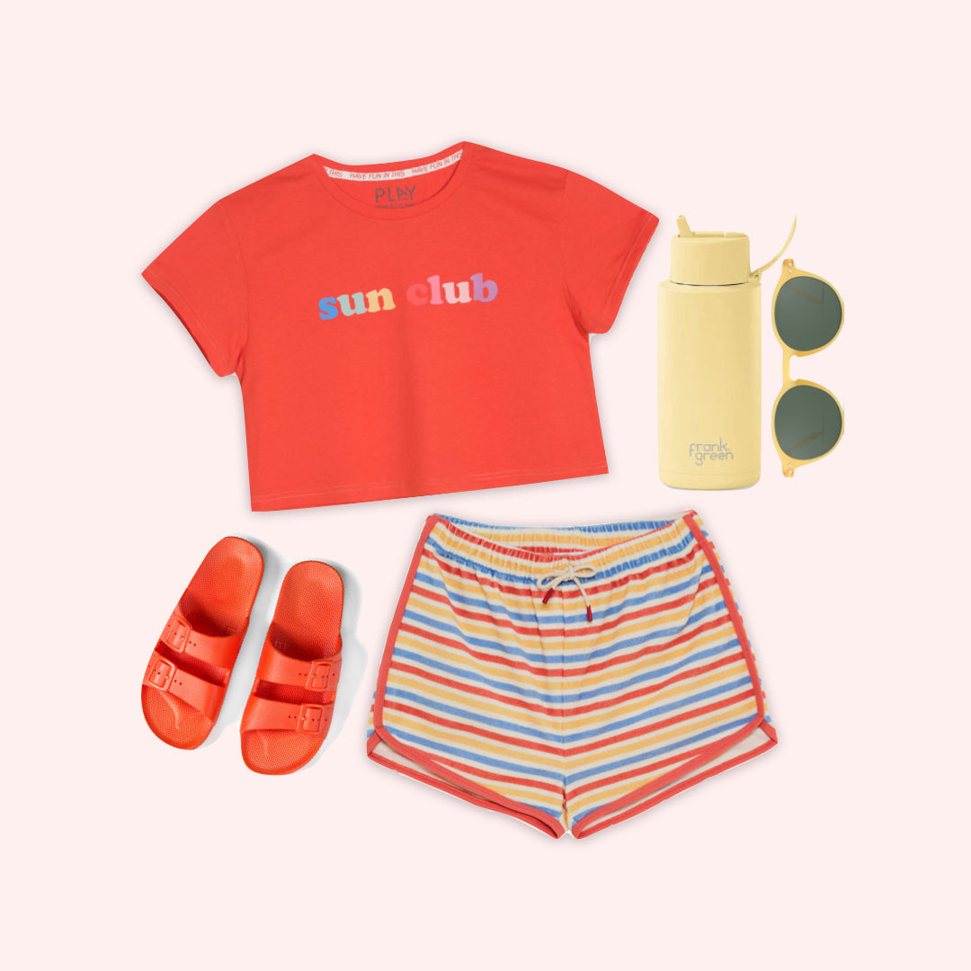 Sign us up, we definitely want to join this club! Our new Sunclub crop tee sits at the belt-line so it’s crop enough for kids, but not too crop for parents. Available in 2 colours. Wear back with any of our Terry Shorties.