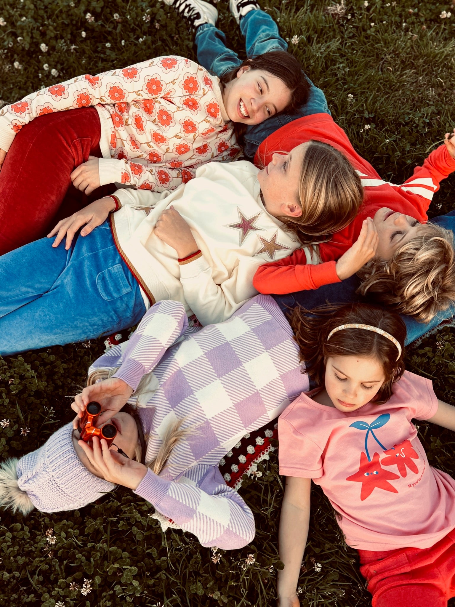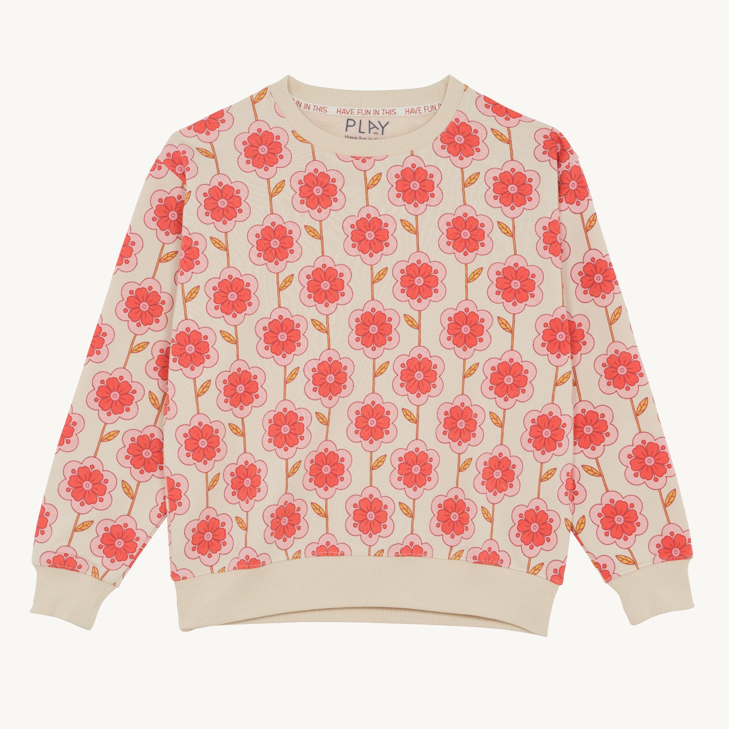 A printed retro floral sweater in French Terry cotton. Wear it back with our terracotta flares or double the cuteness by teaming it with the matching Drops of Juniper skirt.