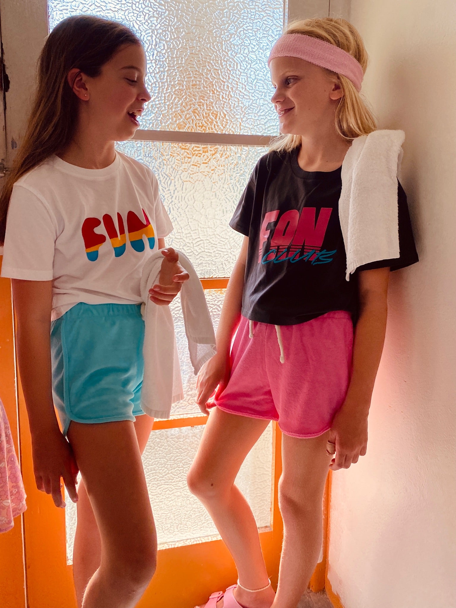 Our brand new demi-crop tee sits at the belt-line so it’s crop enough for kids, but not too crop for parents.