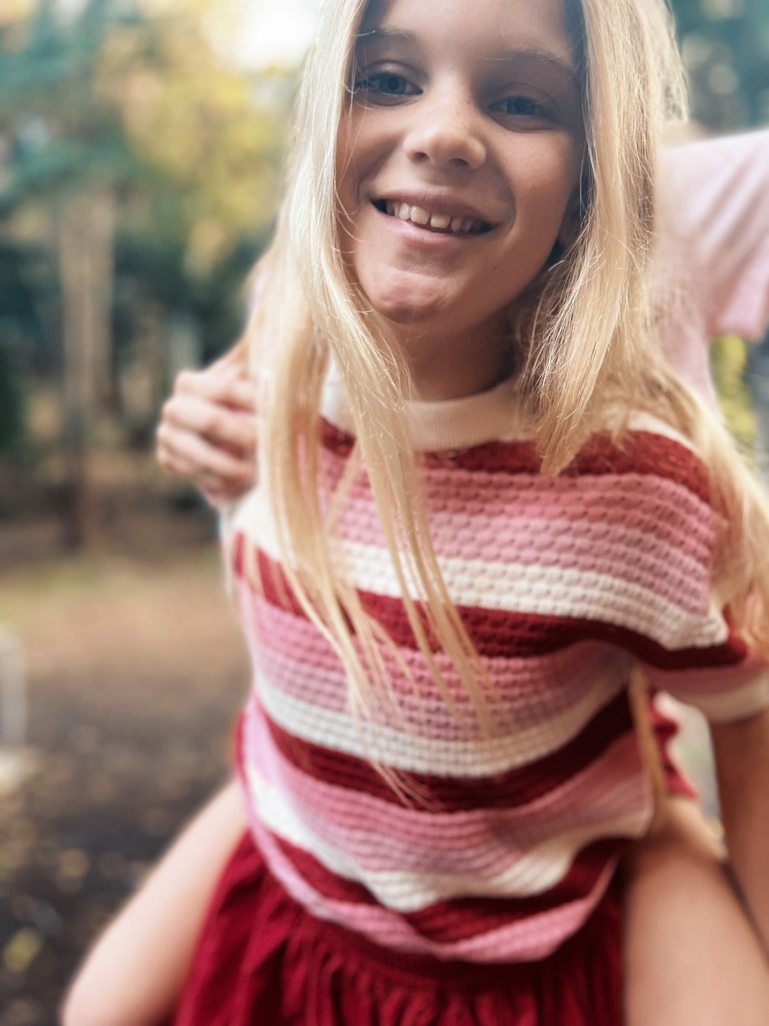 Our best selling Rainbow knit in all new colour way. A soft, 100% cotton knit (no itching) in the prettiest autumnal colours. Cuffed long sleeves and hem with a regular fit.
