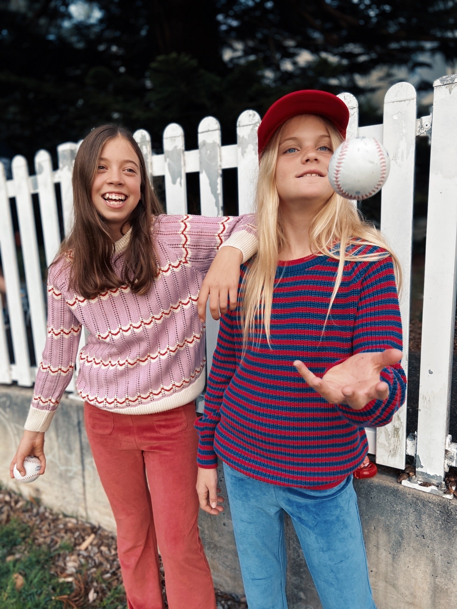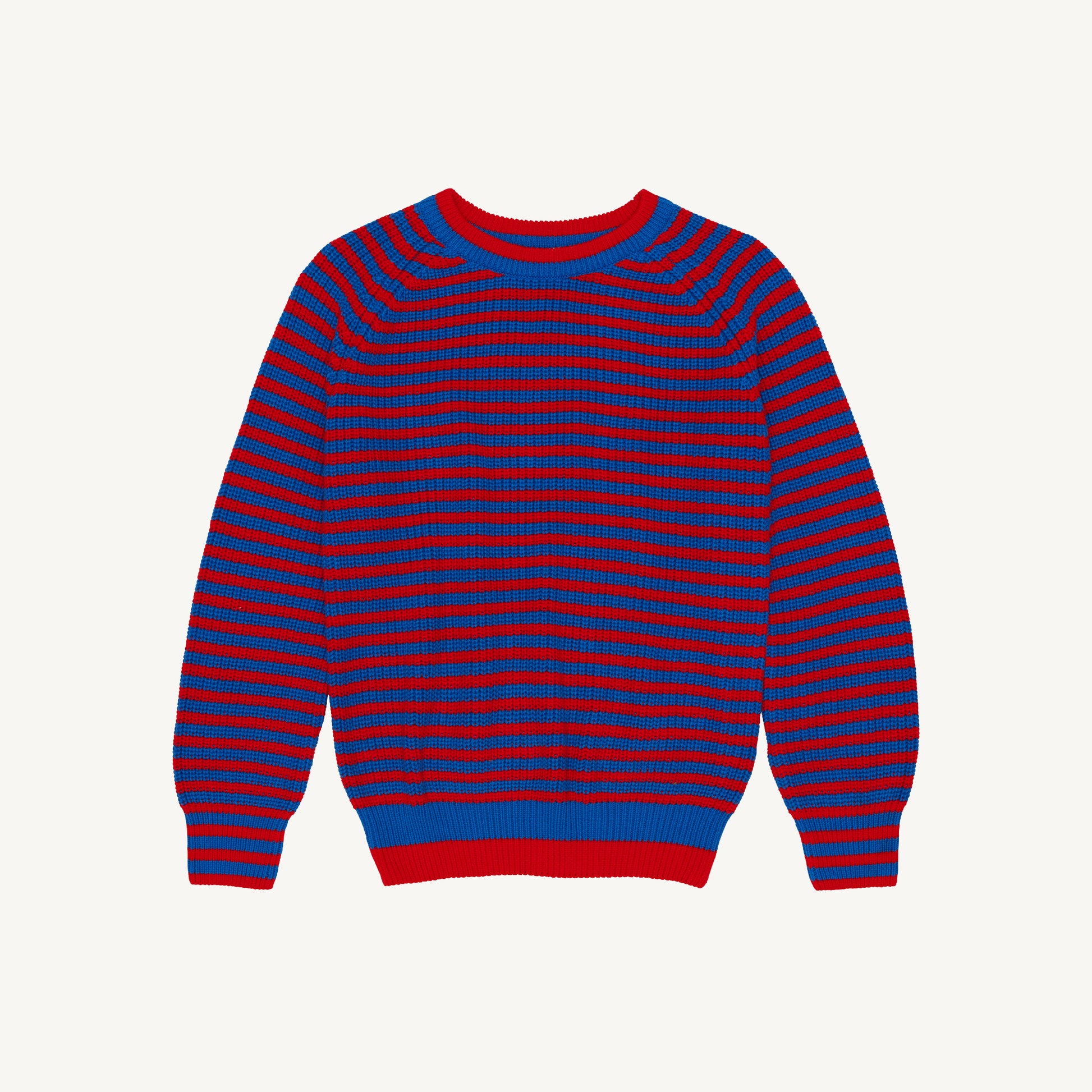 Oversized, chunkier knit in red and blue stripe. Super cosy and so perfect worn with our electric blue flares!