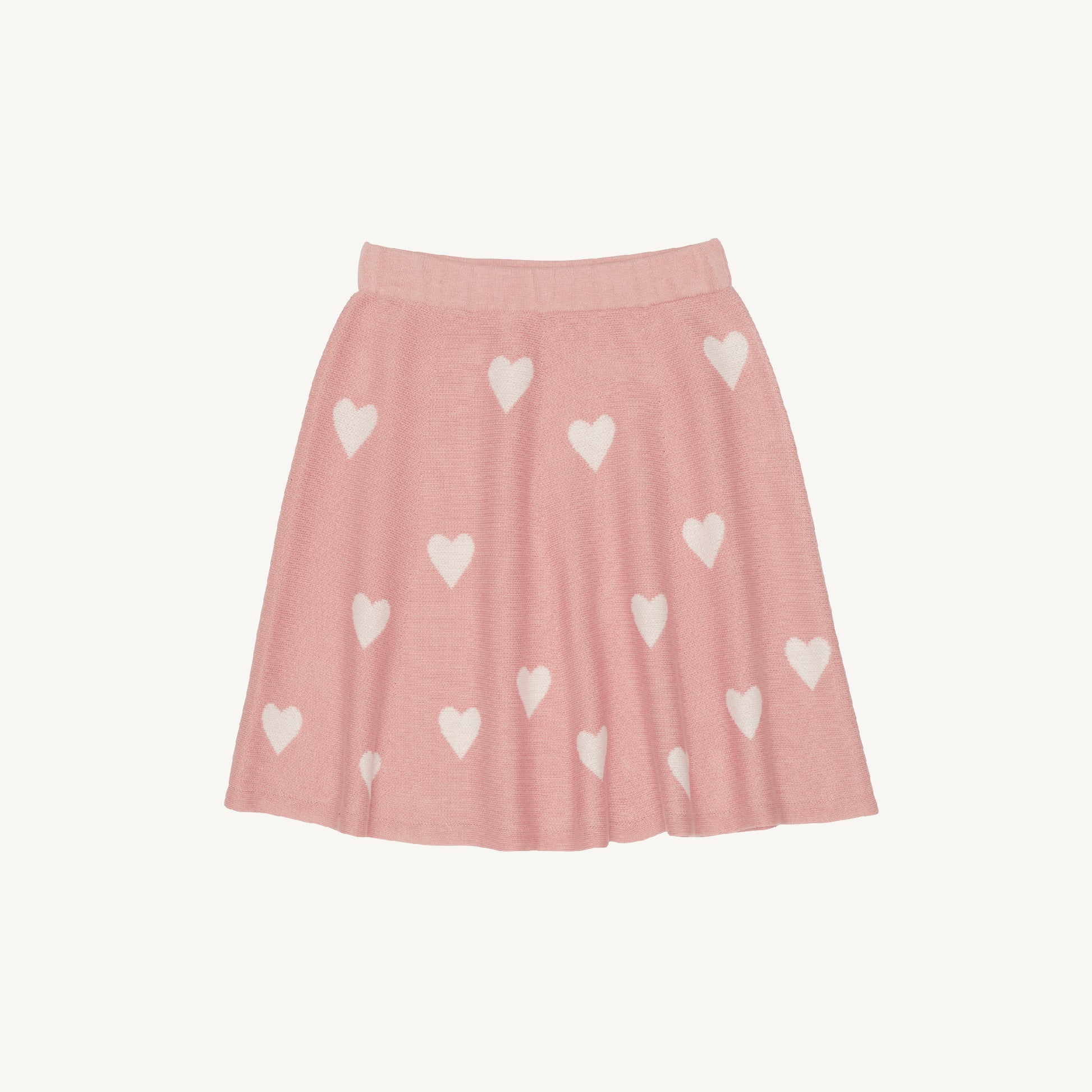 The perfect flippy skater skirt in pale pink knit with cream hearts. Elasticised waist and perfectly spinny, looks ridiculously cute worn with matching Heart U Knit sweater when the weather is cooler, or with a tee when it’s sunny and warm. We love it worn with a pair of Converse hightops for that gritty/pretty vibe. Fit is true to size.