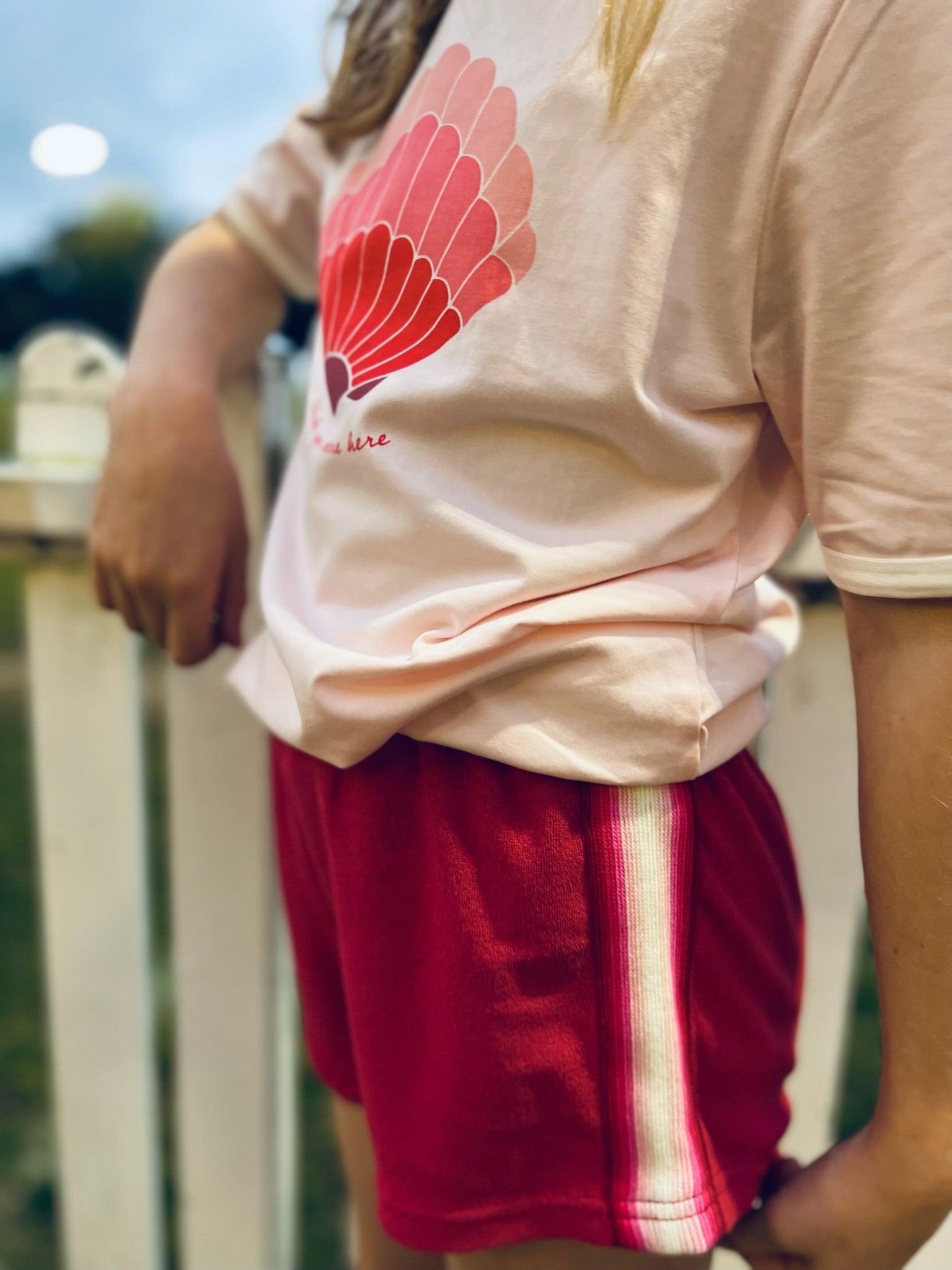 Straight out of the 70’s, these cute little high waist shorts have a comfy elasticised waist and retro stripe detail down the sides. Made from soft terry towelling, complete the look with a ringer tee for full 70’s cool-girl vibe.