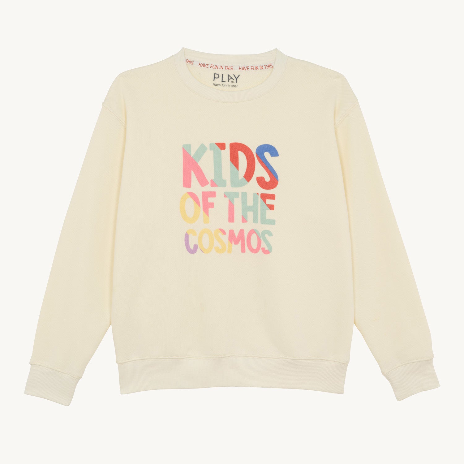 Our unisex Kids Of The Cosmos sweater is a cosy and fun addition to their winter wardrobe. Made from 100% cotton fleece with screen printed front.