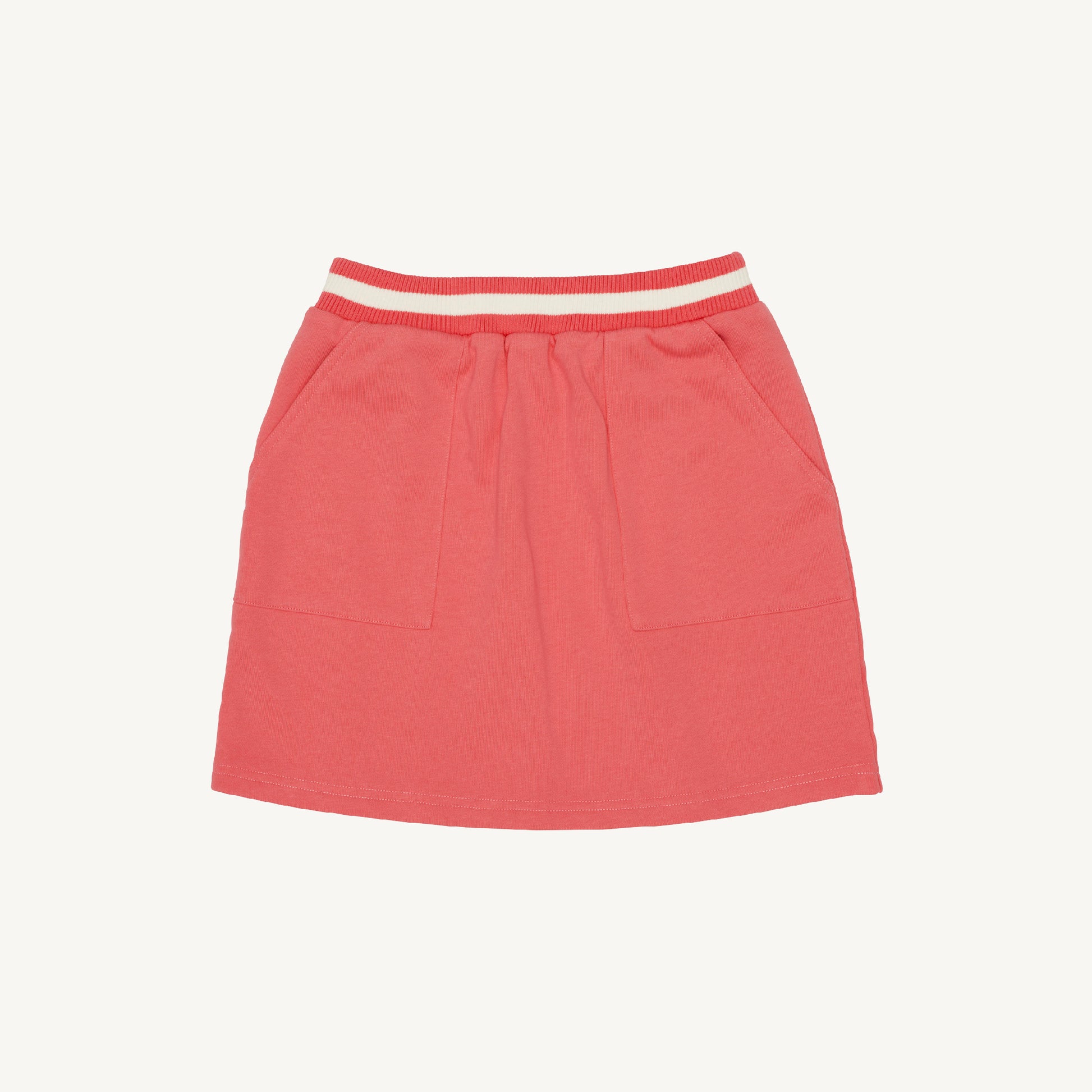 The absolute cutest skirt that works across all the ages. Made from soft pink french terry with contrast stripe waistband, this A-line style looks especially good worn with our pink Rewind Sweater.