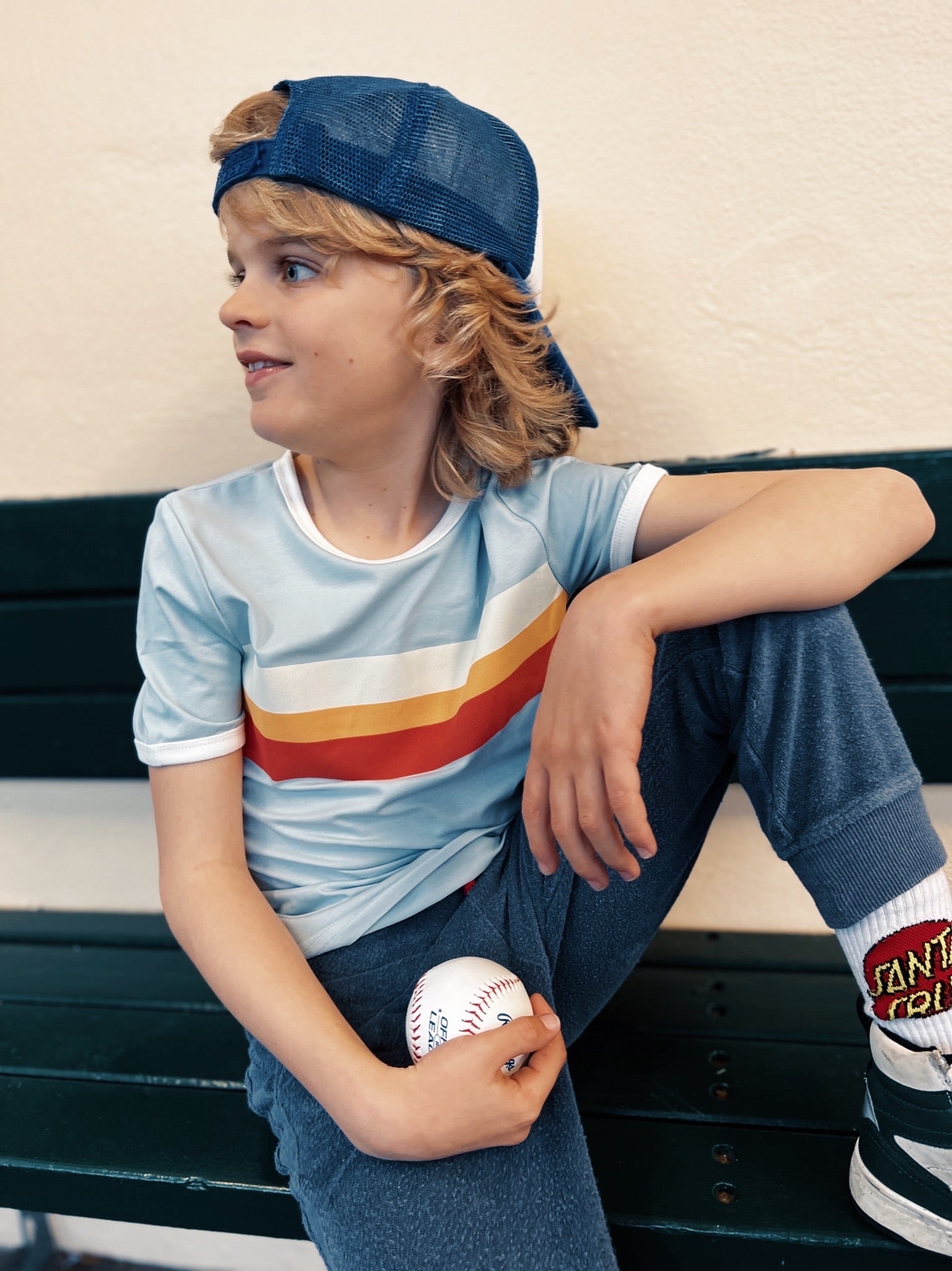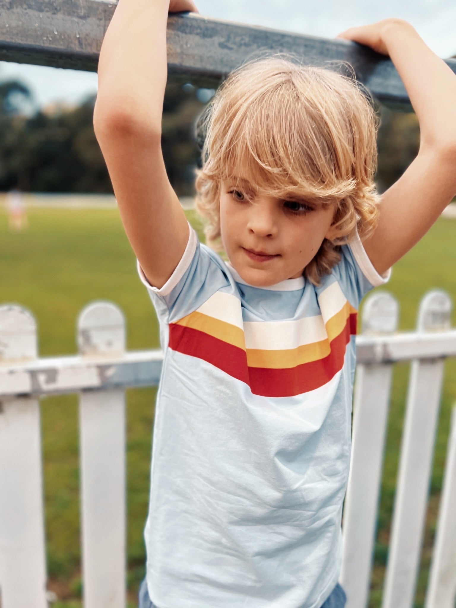 Channelling serious 70’s childhood nostalgia, this unisex ringer is made from the softest cotton with custom stripe screen print.