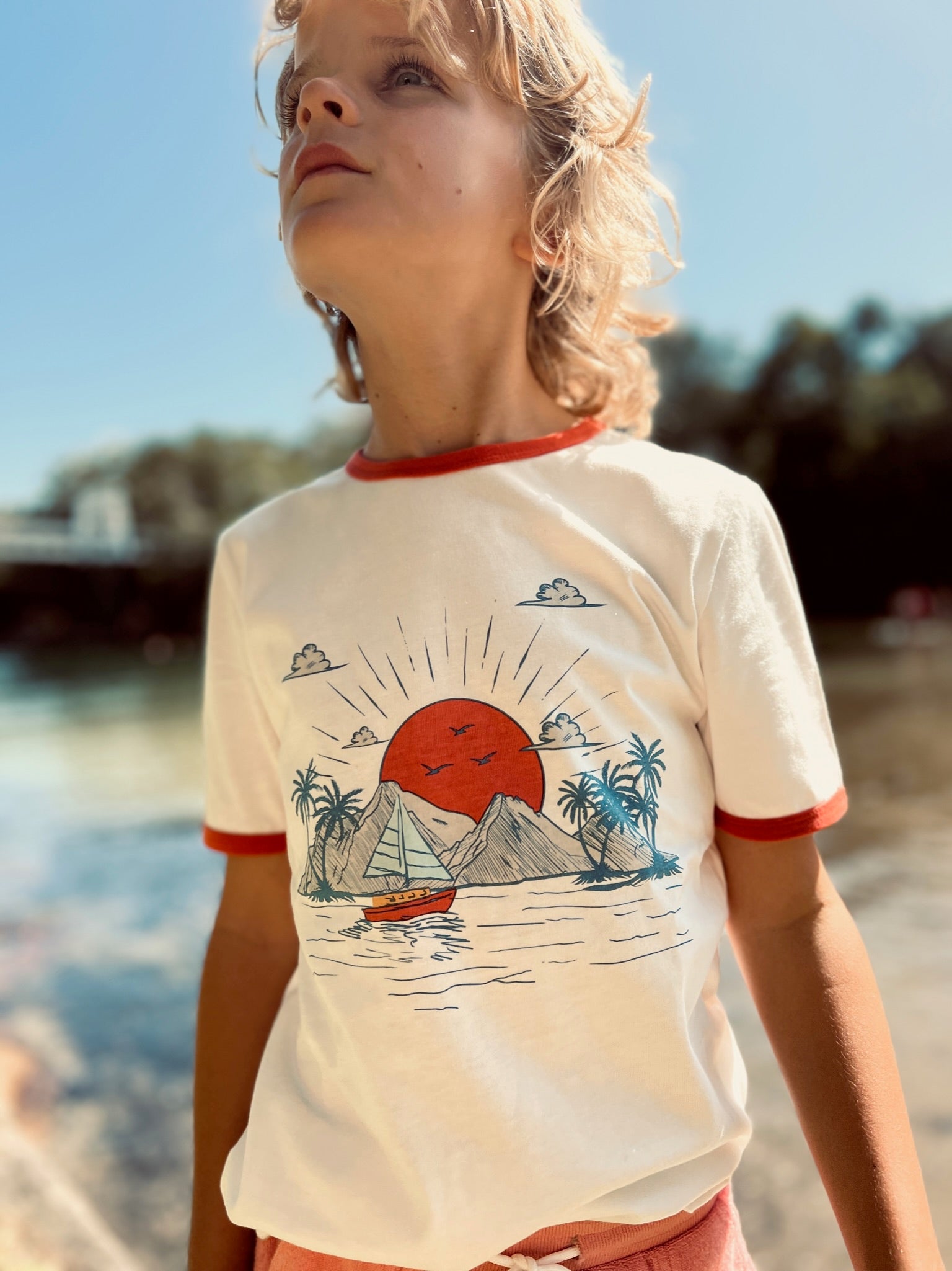 We only operate on Island Time while on holidays. Eat, swim, play, sleep, repeat. Soft cotton tee with contrasting neck and arm cuff trims, ready for a summer to remember!