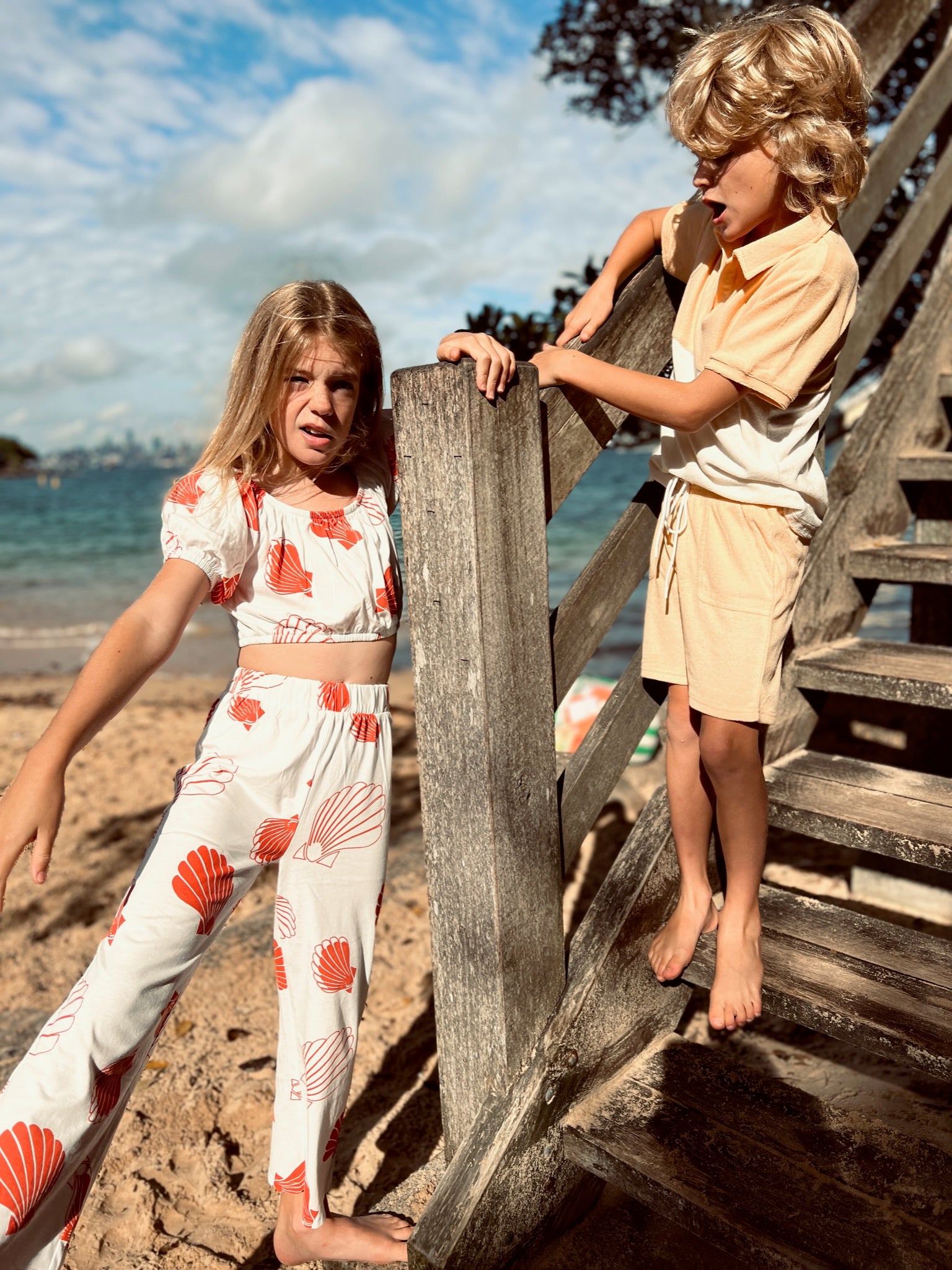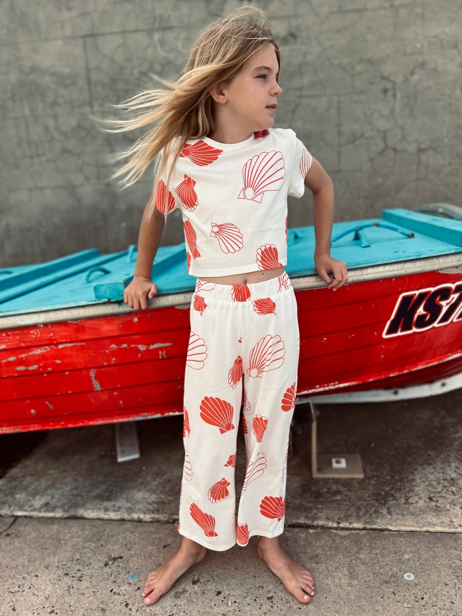 Meet the Ultimate Summer Pant! Lightweight to wear even on the hottest days. Ankle-grazing length to wear with sandals, slides or sneakers. Elasticised waistband for extra comfort. Super cute worn as a set with the matching clam blouse or crop tee!