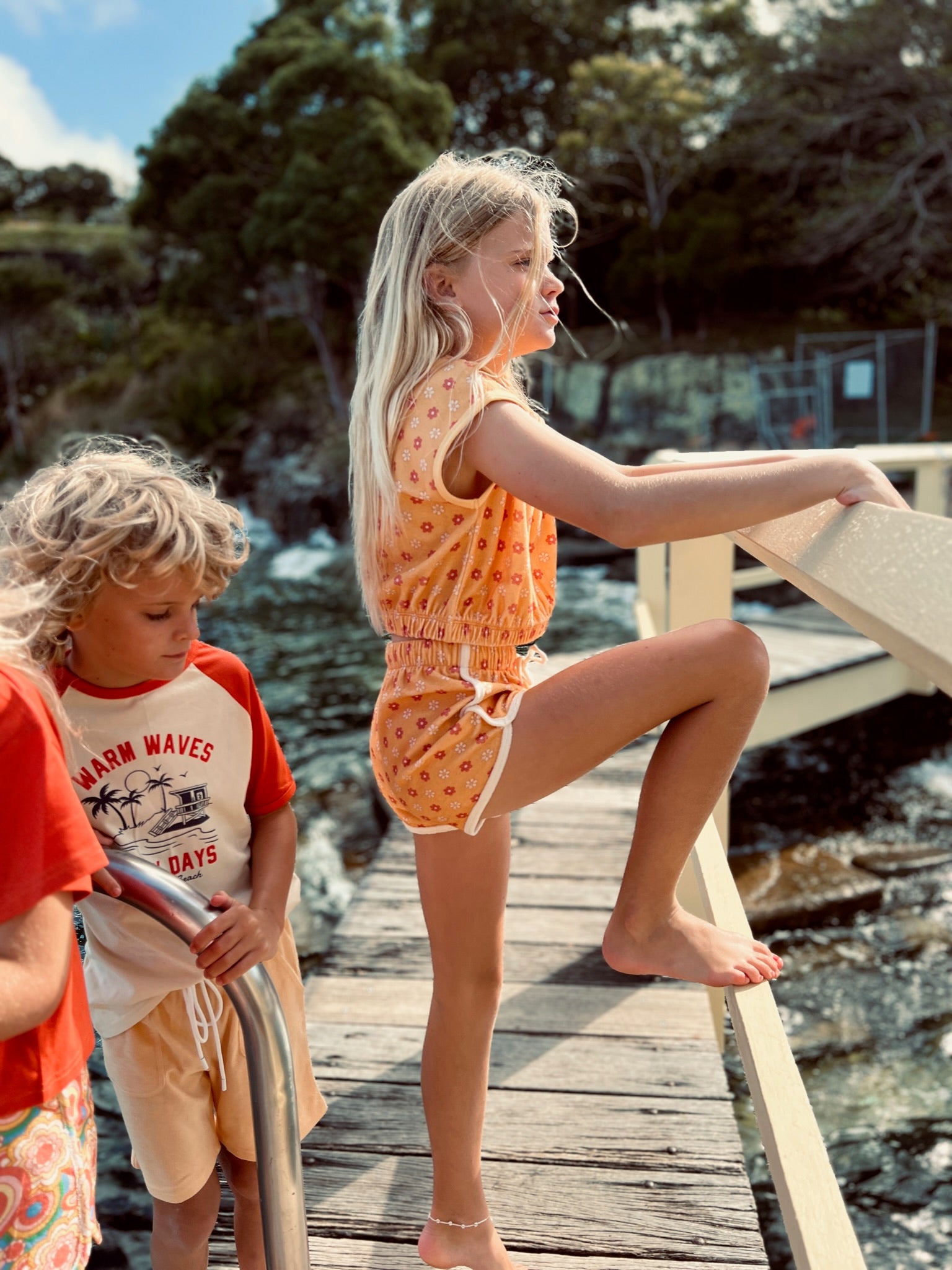 We know it’s bold of us to suggest, but we HIGHLY recommend you very quickly add this Terry crop to your cart. Along with the matching Honeybee Terry Shorties or Retro Mini! It’s just too cute not to own. Cropped with a relaxed elastic so it’s not grippy on the stomach, it just casually floats at the belt line for the perfect amount of crop.