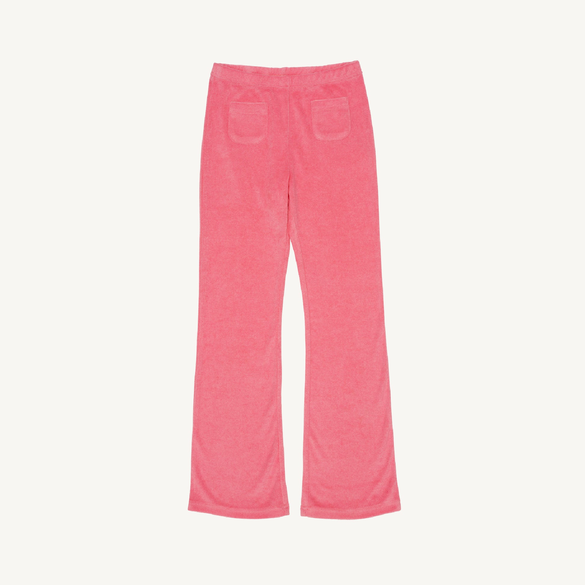 Not leggings and not jeans, but somewhere in between. Our best selling and super comfy terry towelling flares are now available in hot pink! With an elasticised waist, two front pockets and a gentle flared leg, they’re the perfect ankle length, designed to be worn with sandals, sneakers or flats without dragging on the ground. Improved new season fit! If you're in between sizes, size up.