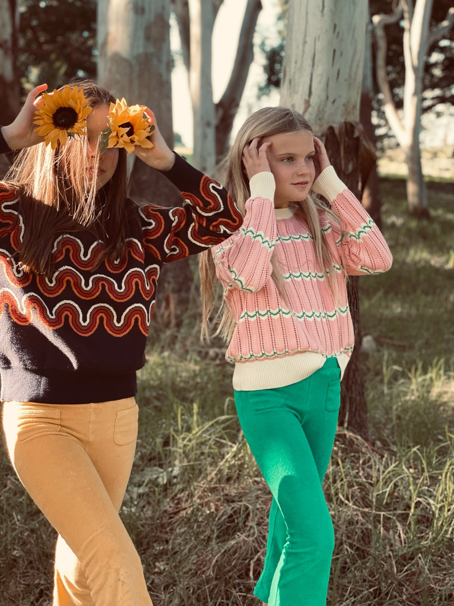 The perfect elevated pant – not leggings and not jeans, but somewhere in between. Super comfy to wear, our terry flares have an elasticised waist, two front pockets and a gentle flared leg. The perfect ankle length, designed to be worn with sandals, sneakers or flats without dragging on the ground. Available in 4 colours. Fit is true to size.