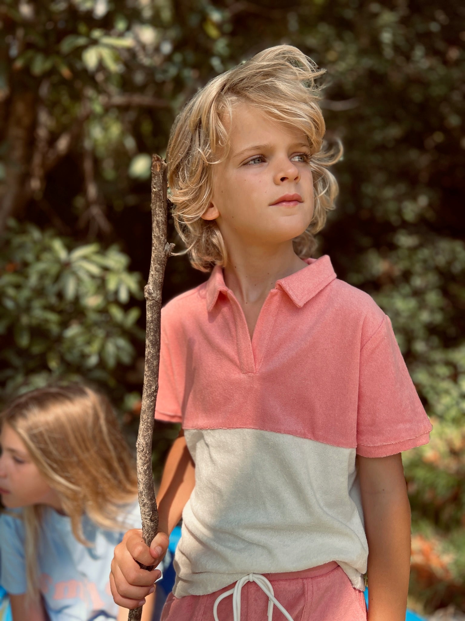 Our classic Terry polo is back, in new delicious gelato pastels! The perfect summer shirt for little dudes. Cool and casual for the beach, but snazzy enough for dinners out too. Go terry all the way and wear back with our Terry shorties or new Terry Long Shorts.