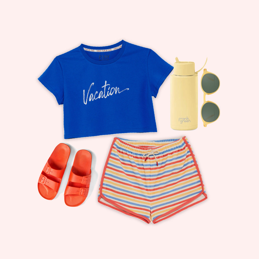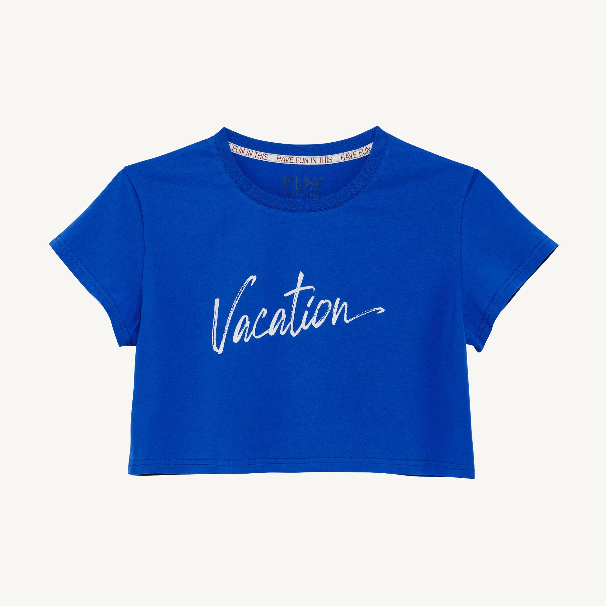 We're fairly sure we've found their new favourite tee! Let everyone know you've got that holiday feeling with the new season Vacation tee. This crop tee sits at the belt-line so it’s crop enough for kids, but not too crop for parents. Wear back with the the tropicana print summer pants or with our rainbow selection of terry towelling shorts.