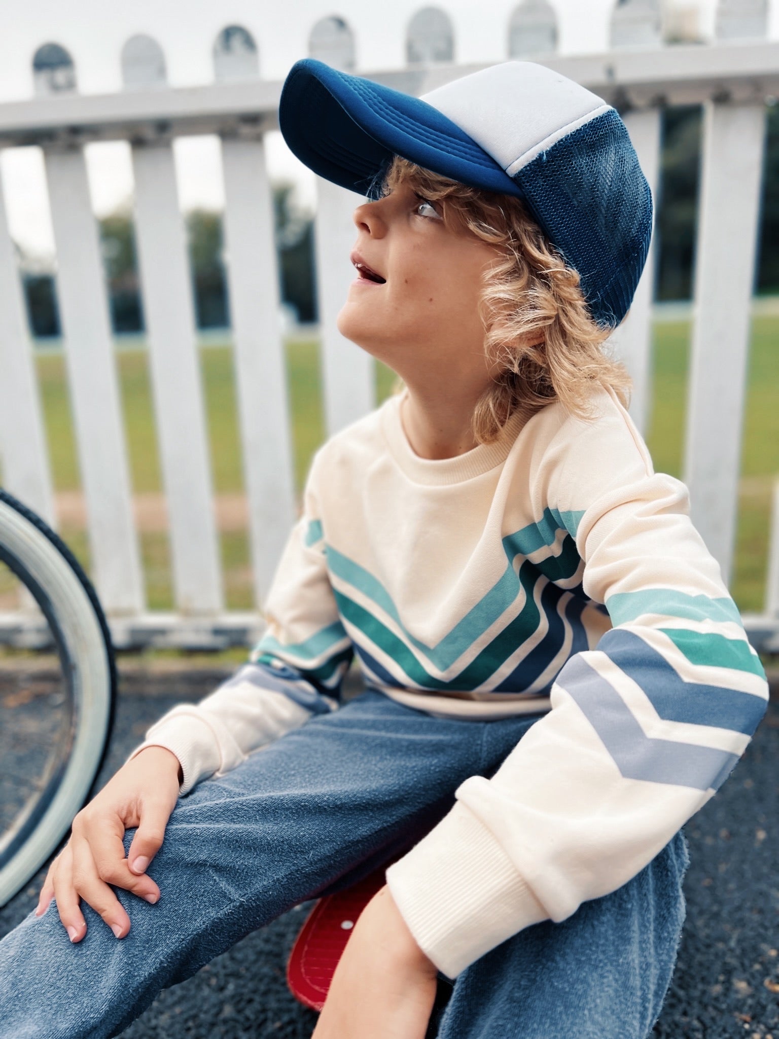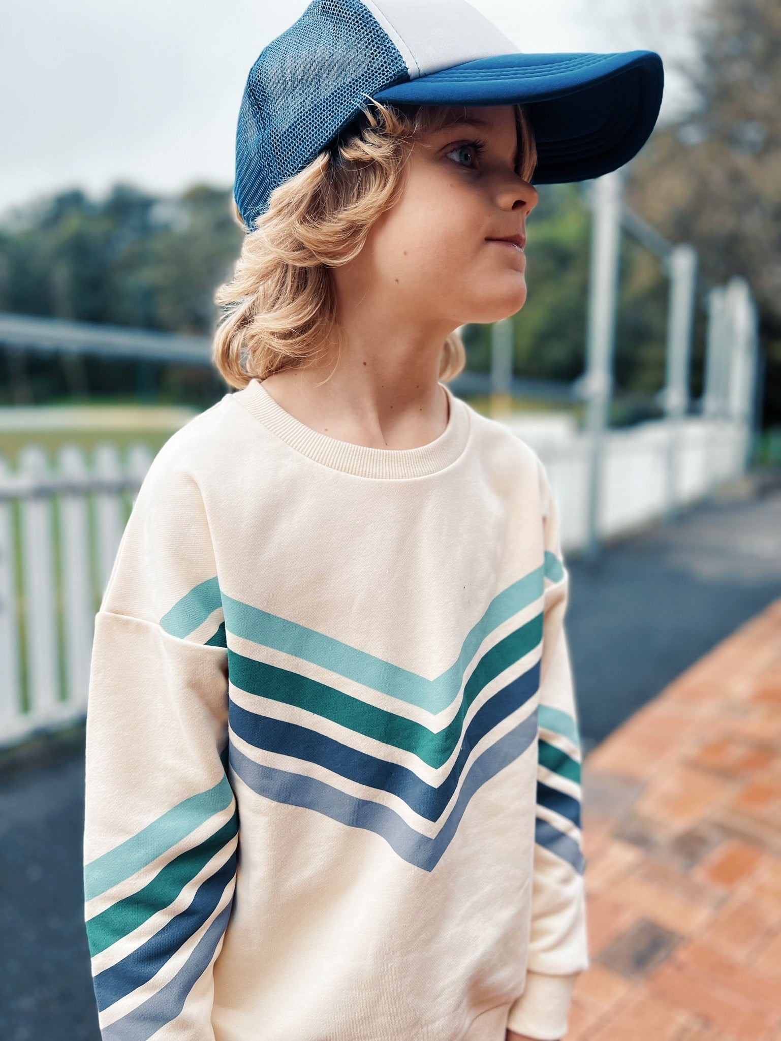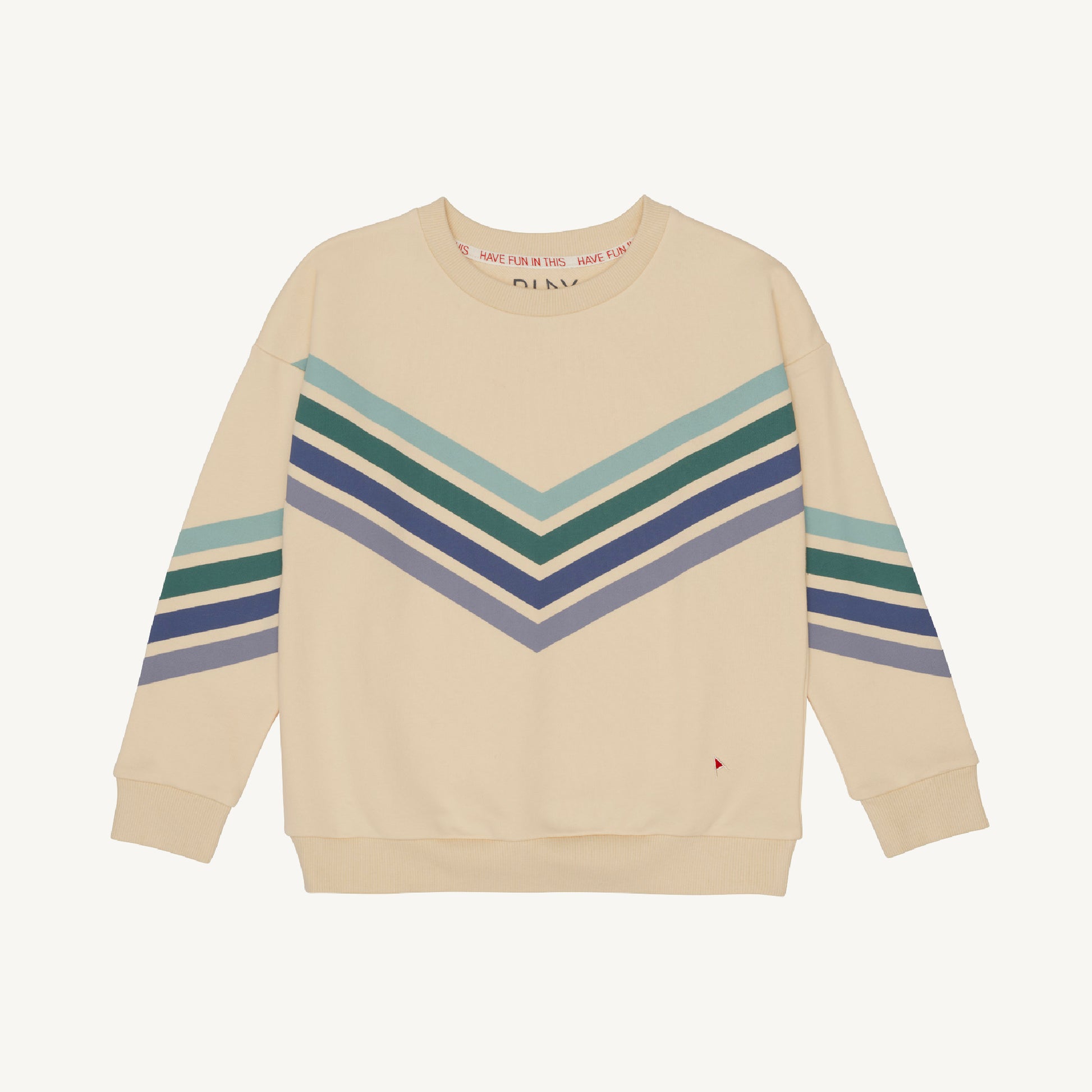 Unisex drop-sholder sweater with graphic chevron print. Super cosy to wear and available in 2 colours. Hot tip, buy both colours, this sweater looks great with everything!